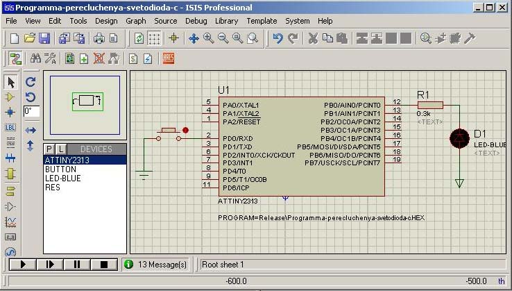;Если нажать на кнопку-светодиодначинает мигать,отпустить-гаснет.Сдесь мы напишем функцию задержки,т.к. контроллер исполняет комманды 4 000 000 в секунду,а программа как вы поняли это просто бесконечный цикл,нам нужно заставить чтото делать его.Мы сделаем так,что контроллер просто будет отнимать от чисел 1-цу нужное нам время.