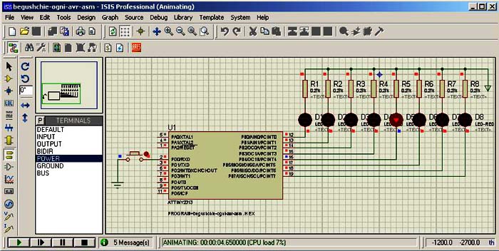 ;При включении питания контроллера светодиод двигается в одну сторону.Если нажать кнопку,светодиод будет двигаться в другую сторону.