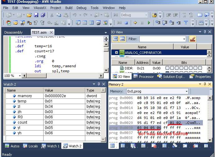 ldi zl,low(memory*2) ;опять грузим в z адресс начала массива