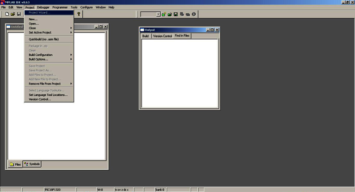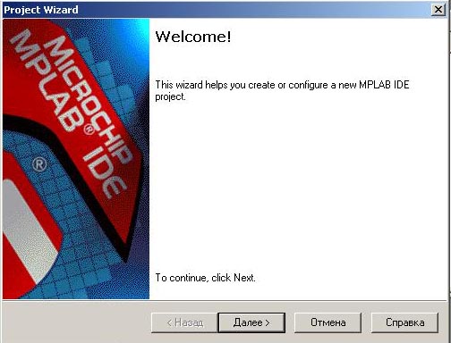 Шаг 1. Запускаем MPLAB.exe и выбираем Project\Project Wizard...