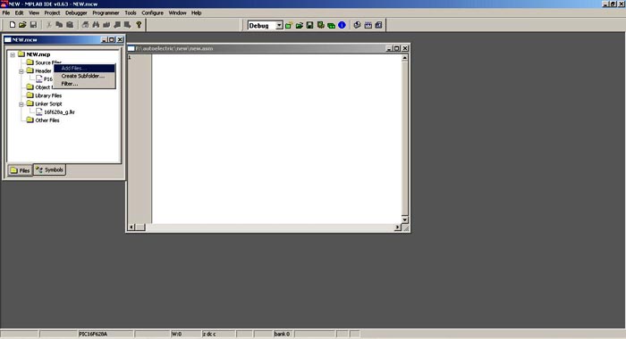 Шаг 10. Нужно добавить этот файл к проекту, в нем и будем писать программу. Нажимаем правой клавишей мышки на "Source Files" и "Add Files" откроется оконо в нем выбираем наш New.asm.
