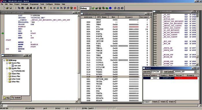 Шаг 14. Можно счёлкнуть два раза на файле p16f628a.inc и посматреть его. Этот файл мы будем включать в проэкт, чтобы много не писать.Дальше будем писать программу и разбираться с PIC-ком.