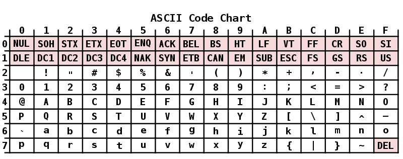 ;Преобразование HEX в ASCII код из таблицы приведённой ниже.