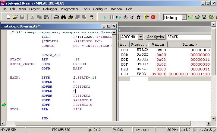;У PIC контроллеров нету аппаратного стека.Поэтому приходится его делать програмным.